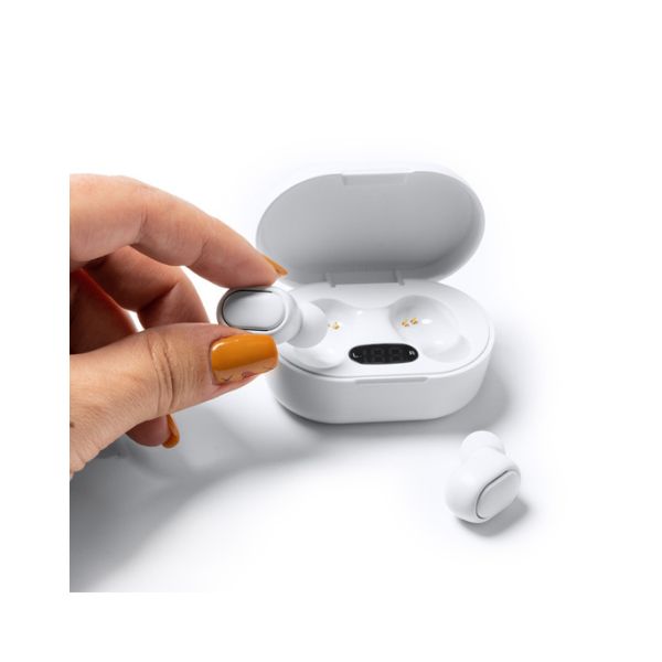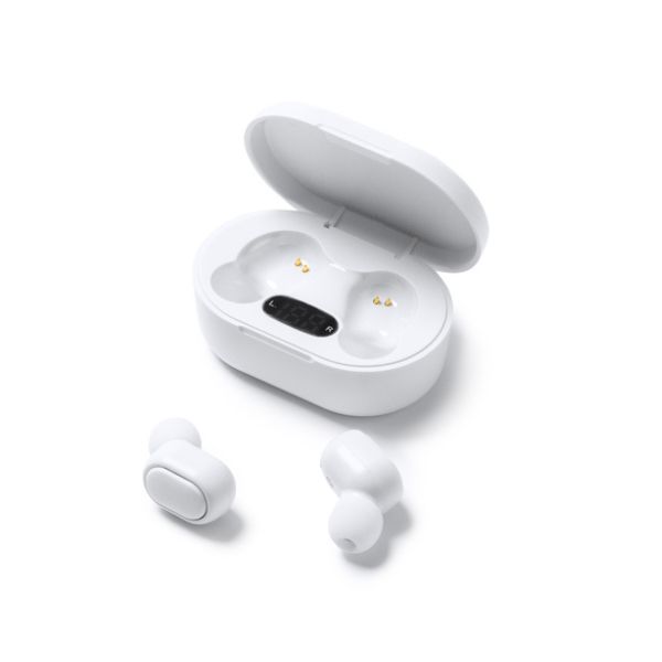 Auriculares inalámbricos Bluetooth 5.0 con estuche de carga. Indicador de carga LED en el estuche y botón multifunción integrado en ambos auriculares. Podrás escucharlos donde quieras con su función manos libres y trasportarlos fácilmente por su estuche con batería recargable y tapa. Duración de 3-4 horas. Cable incluido.