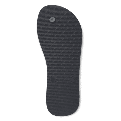 Suela de goma EVA y tira de PVC negra.
