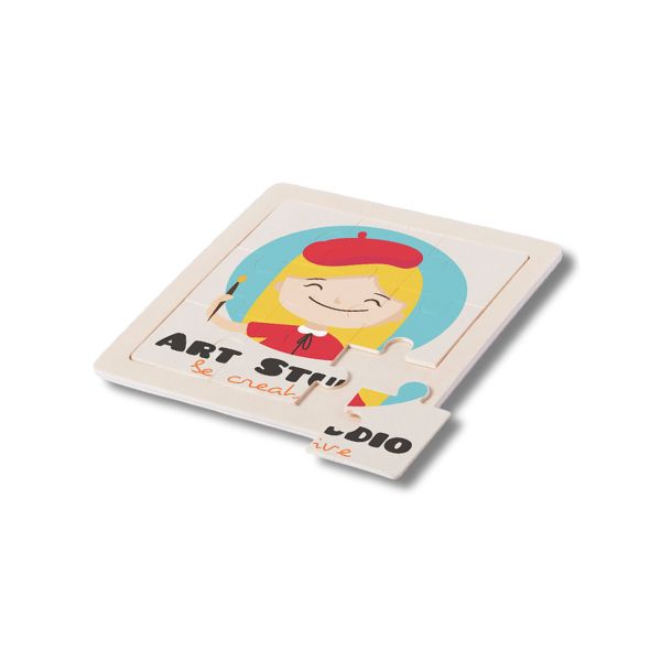 Puzzle de madera con 9 piezas totalmente personalizable para despertar el ingenio y habilidad de los más pequeños.