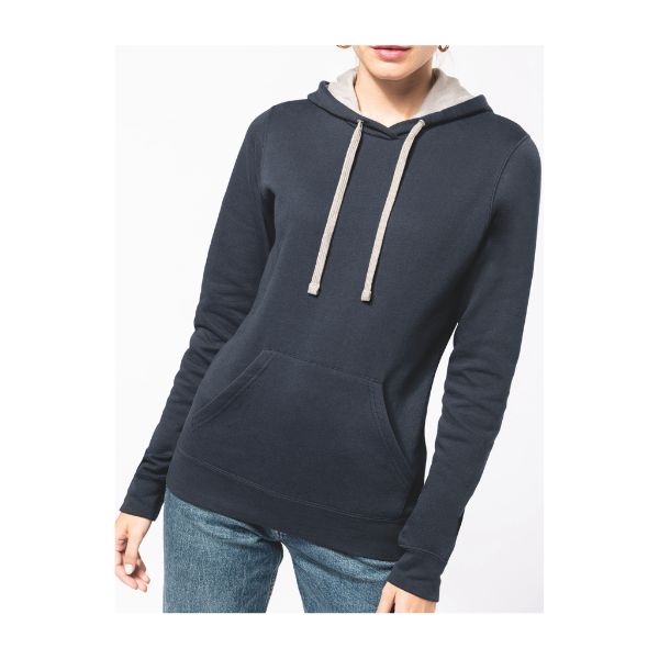 Sudadera con capucha bicolor de estilo casual y desenfadado.