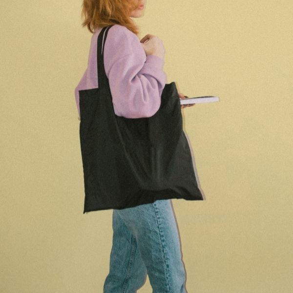 Bolsa fabricada en tejido de algodón en color, con asa larga.